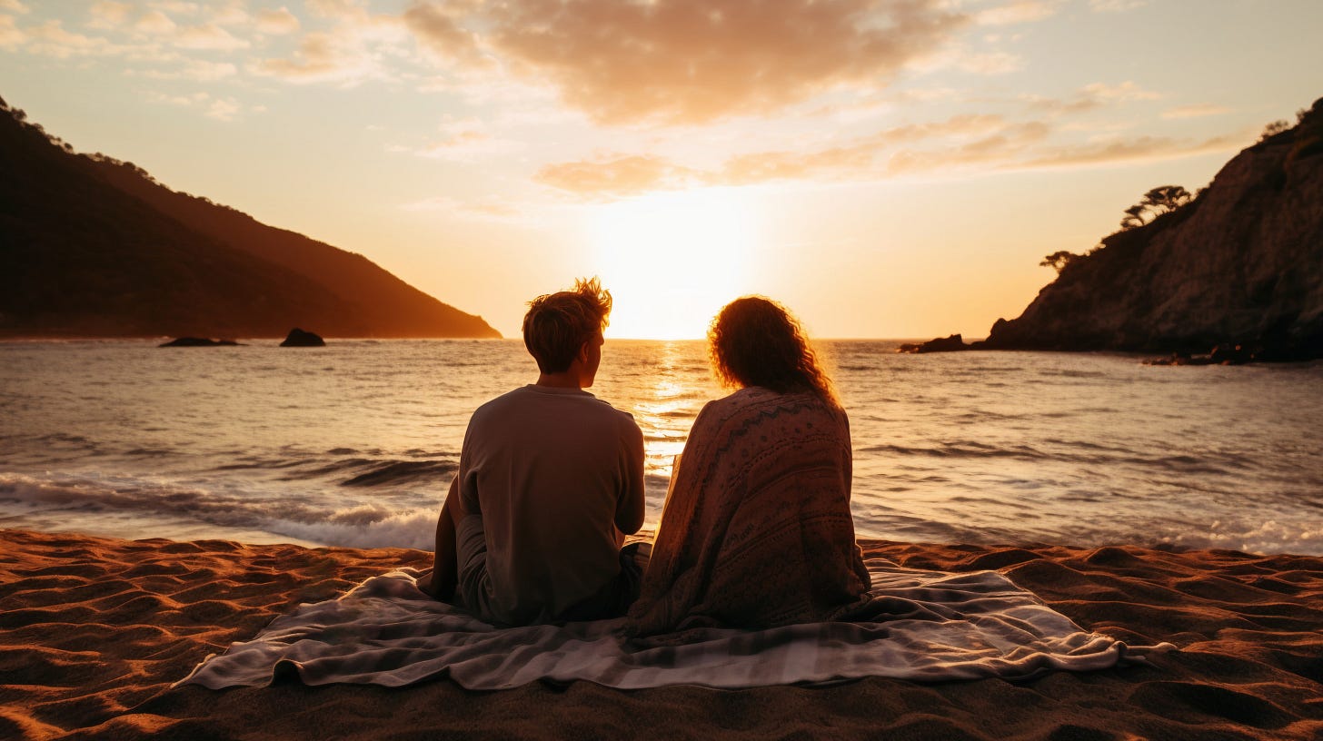 Ella asintió. Su cabello ondeaba con la brisa marina. Recostados sobre la balaustrada del balneario, ambos asistían a un atardecer que pintaba el cielo de un naranja profundo con pinceladas violetas.
